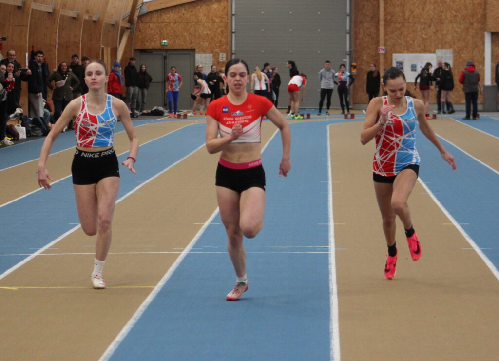 Lison Janvier championne du Finistère cadette du 60 m en 8″10, meilleur chrono féminin du jour.