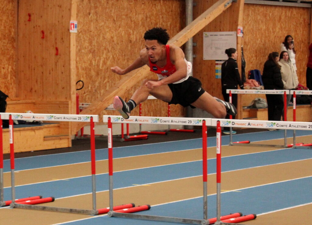 Melvin Le Sourd champion du Finistère junior du 60 m haies en 8″55 (RP).