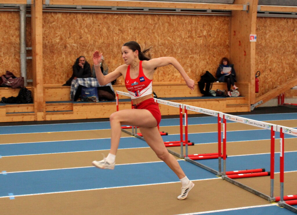 Ciara Lemaire championne du Finistère du 60 m haies (9″25 en série puis 9″45 en finale) et de la longueur (4,88 m)